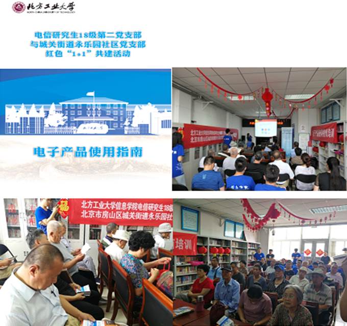 随着信息化时代的日益发展,电子产品应用越来越广泛,为人们的吃穿住行带来了便捷的同时,也在潜移默化中改变着人们的生活方式,在这种转变的过程中,老年人因思维习惯和接受新事物能力方面的限制阻碍了其享受这一大福利,老年人对便捷生活方式的渴望与不能熟练掌握电子产品的使用之间发生了矛盾,为此,近日,永利集团88304官网集团电信研究生18级第二党支部与北京市房山区城关街道永乐园社区党支部开展了一场化解这一“矛盾”的红色“1+1”共建活动,为永乐园社区党支部老年党员们举办了一场题为“常用电子产品的使用指南”培训讲座,支部党员及积极分子20余人参加了此次活动。