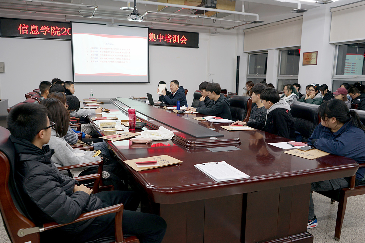 11月13日晚,学院党委书记刘文楷以“守初心、担使命,做合格共产党员”为主题为新发展党员上专题党课。刘文楷同志从习近平新时代中国特色社会主义思想,和守初心、担使命,做合格共产党员两个方面,同新发展党员学习交流了习近平新时代中国特色社会主义思想的核心内容。并以“青年学生”、“合格党员”、“加强党性修养”三个关键词为切入,结合习近平总书记在纪念五四运动100周年大会上的重要讲话精、合格党员“四讲四有”的基本要求等,对青年学生加强党性修养,做合格共产党员提出了殷切希望,要求他们要不忘初心,牢记使命,以党员的标准严格要求自己,平常时候看得出来、关键时刻站得出来、危急关头豁得出来。