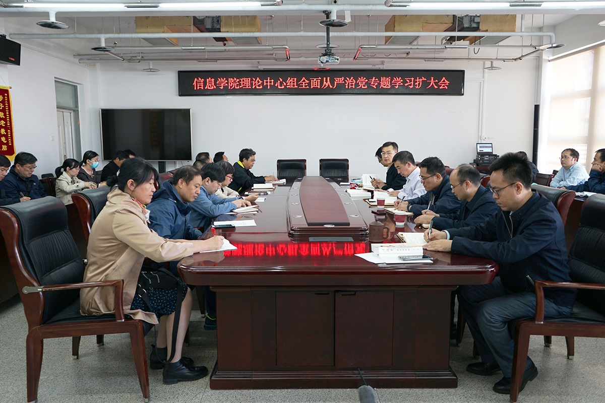 10月12日,永利集团88304官网集团党委理论中心组成员在瀚学楼1014会议室召开学院理论中心组集体学习(扩大)会,专题学习《习近平谈治国理政》第三卷第19专题“不忘初心、牢记使命,把党的自我革命推向深入”中关于“全面从严治党”的系列文章。学校党委理论学习中心组巡听工作小组成员、学院各系(中心)主任、各学科责任教授和教工党支部书记列席会议。会议由学院党委书记王月海主持。