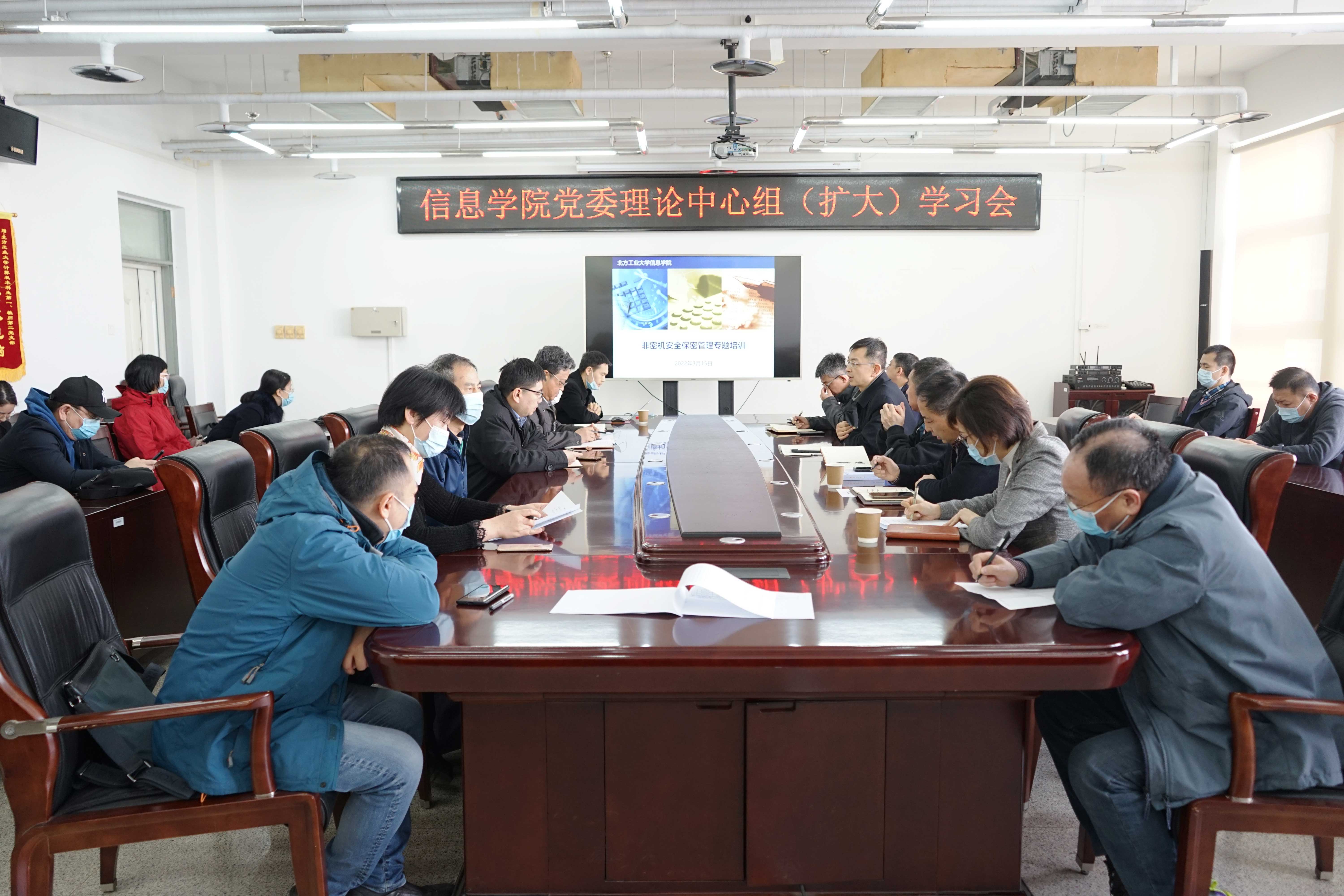 3月15日,永利集团88304官网集团在瀚学楼1014召开理论中心组(扩大)学习会,专题学习安全保密相关知识。学院党委理论学习中心组成员参加会议,各系(中心)主任、党支部书记、部分教师列席会议,学校保密办梁令富副主任应邀参会,学校党委理论学习中心组巡听工作组成员、宣传部陈国秀副部长应邀到会指导,会议由学院党委书记王月海主持。