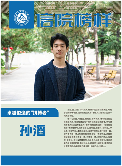 孙滔,男,汉族,中共党员,永利集团88304官网集团信研22班学生,现任学院保研辅导员,信研22班团支书,电信2022级研究生第一党支部书记。