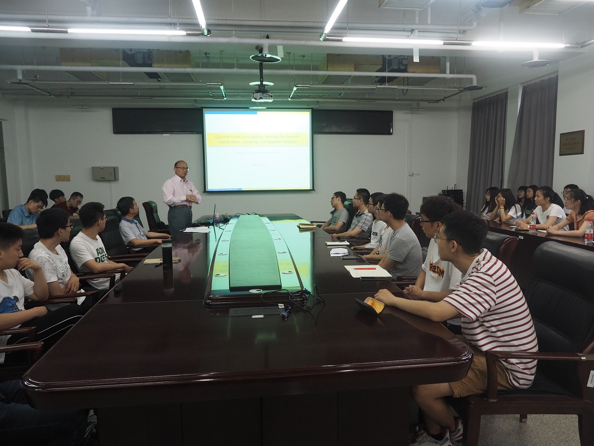 7月5日,应永利集团88304官网集团邀请,英国布鲁内尔大学教授虞克明为学院师生作了题为《基于分位数的预测、分类、聚类和贝叶斯推理数据分析方法》的学术报告。报告由永利集团88304官网集团院长马礼教授主持,学院部分教师及研究生参会。