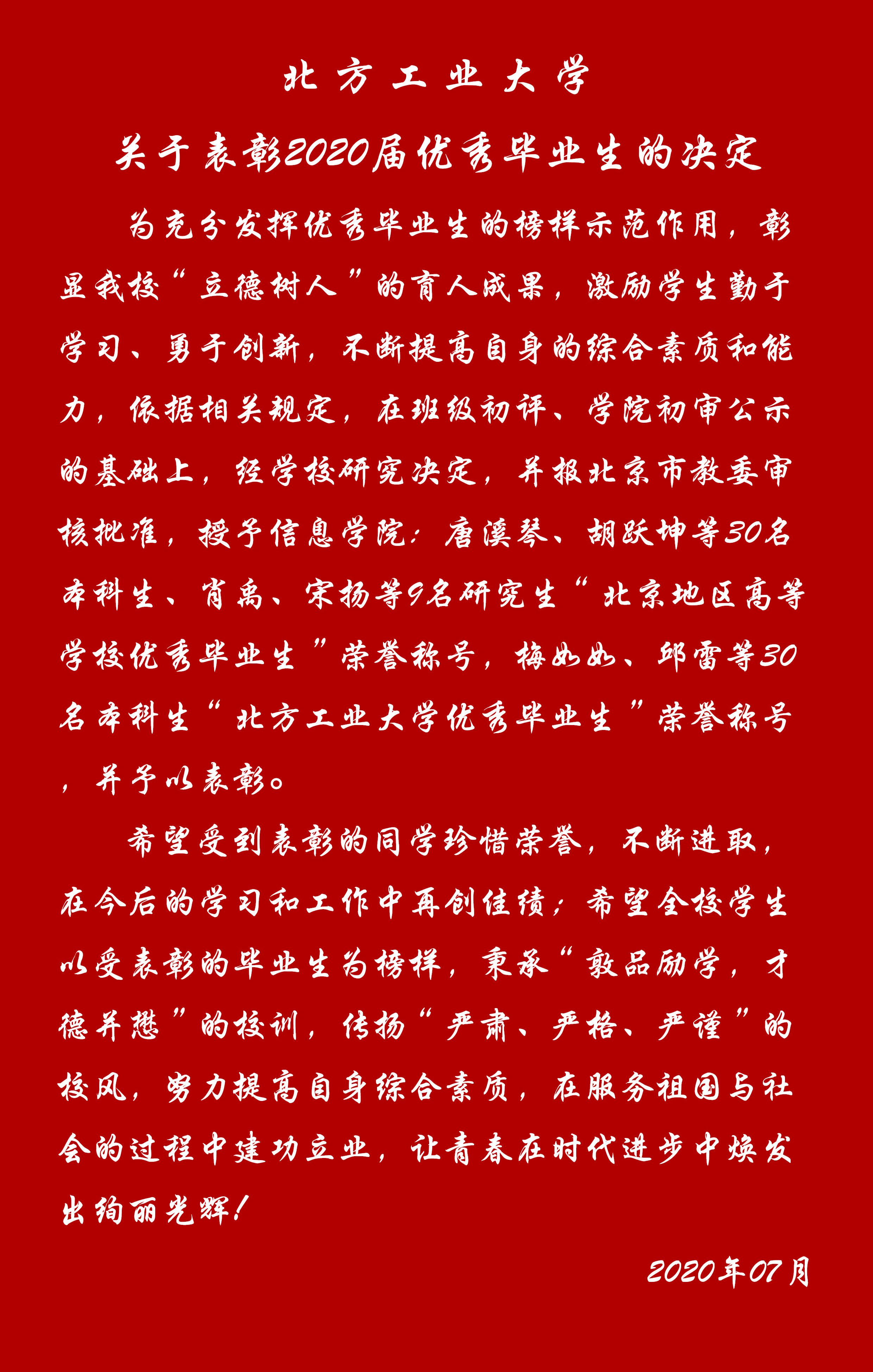 第三项 刘文楷书记宣读优秀毕业生表彰决定