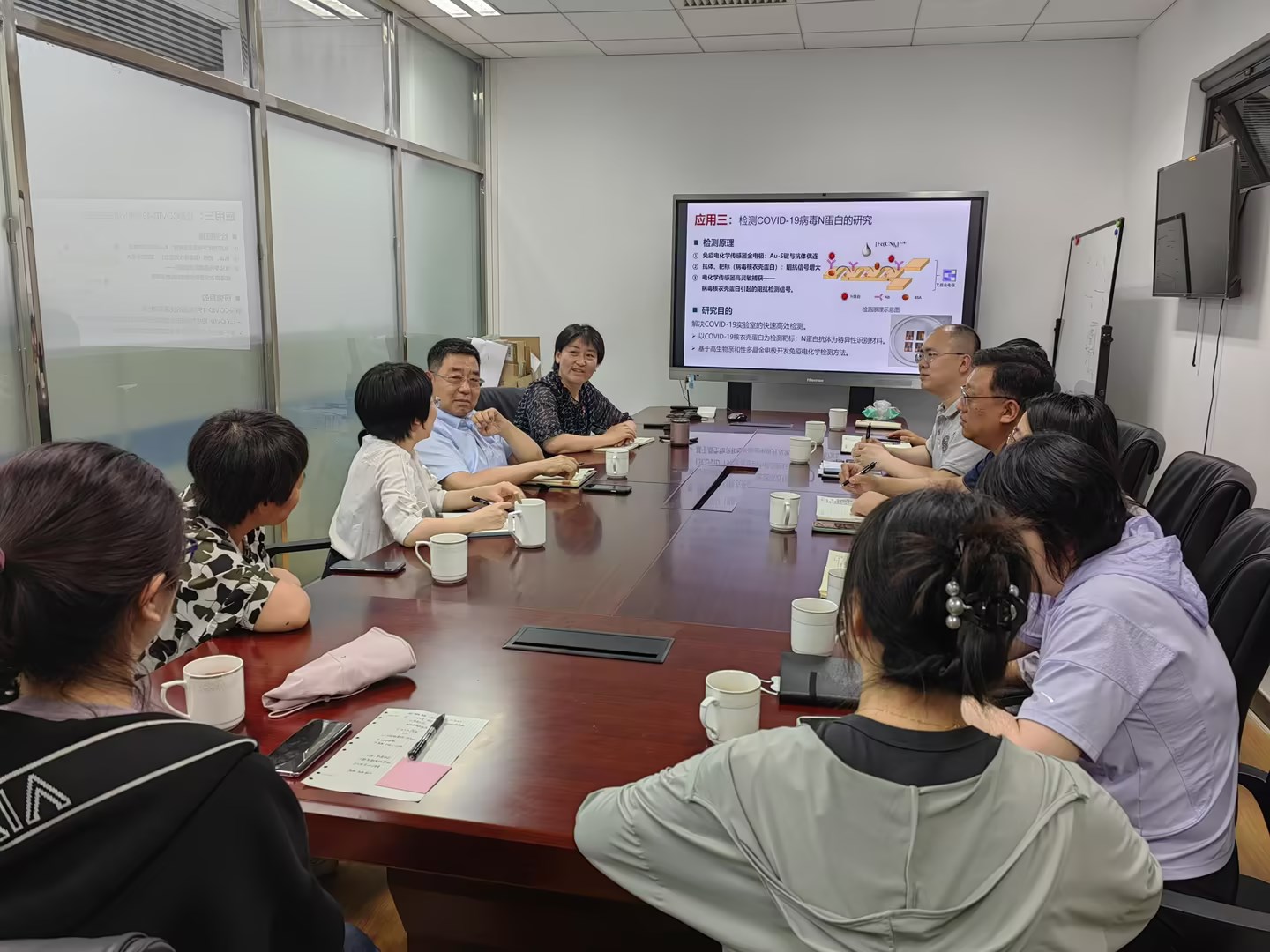 随后,双方人员在博远楼713会议室就今后的合作内容进行了具体座谈。闫江教授介绍了目前集成电路产业界的发展趋势及遇到的瓶颈与挑战,探讨了集成电路先进工艺。赵海波所长介绍了北京市计量检测科学研究院的整体情况,重点介绍了化学分析与生物医药所(化医所)的主要业务、具备的检测设备与科研项目情况。张静教授进一步讲解了学科在生物传感器制备及检测应用方面所作的工作及取得进展。
