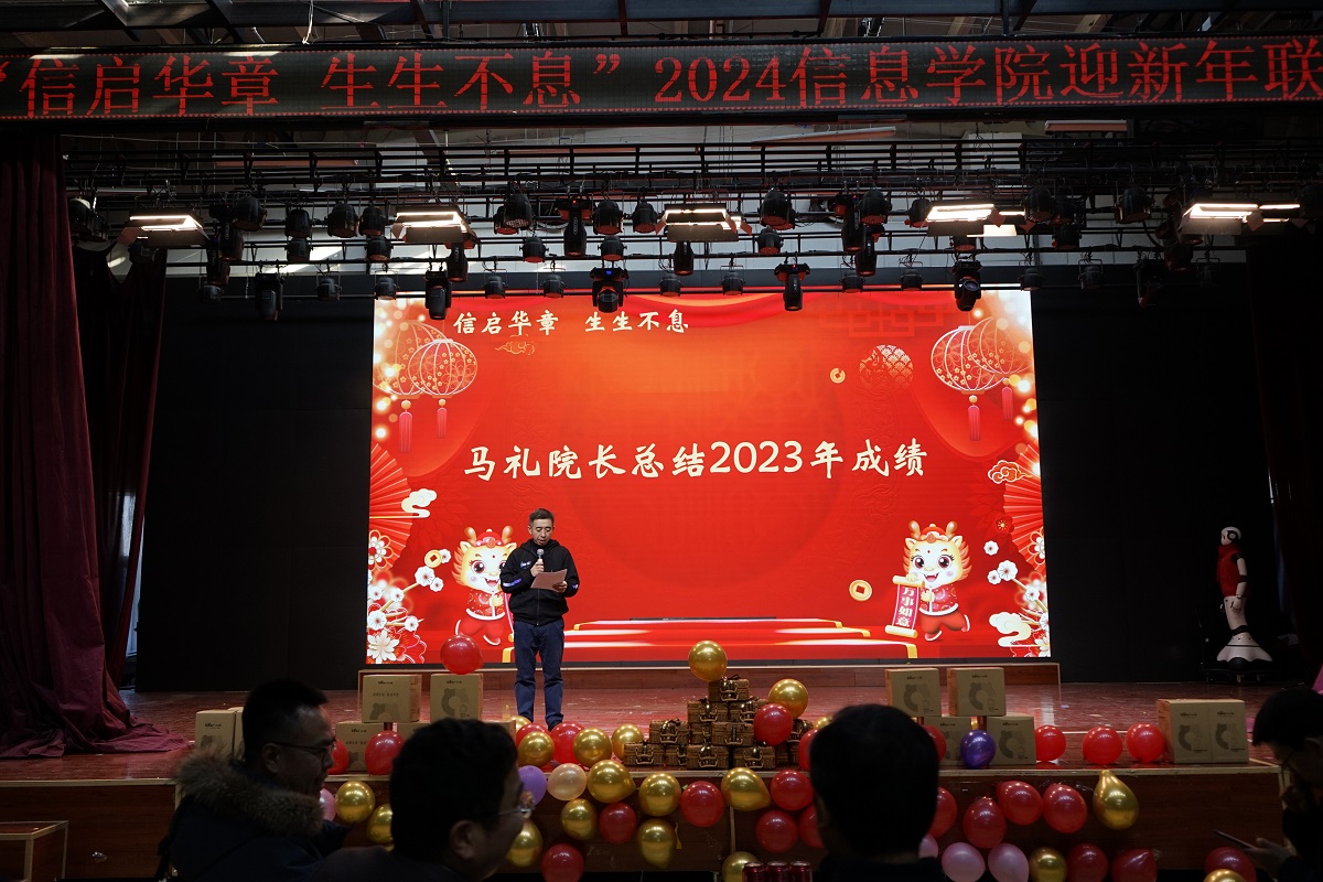 校党委副书记史贞军致新年贺辞。他代表学校向全院教师送去新春的祝福,并对大家一年来全体教职工为学校各项工作的辛勤付出表示感谢。他充分肯定了学院过去一年工作中所取得的各项成绩,并一一列举了诸多教师和学生的先进事迹,他鼓励大家今后要齐心协力,锚定目标,奋勇争先,落实好学校的各项决策部署,努力实现个人和学院的发展与学校同频共振,为学校高水平应用型大学建设做出自己应有的贡献。
