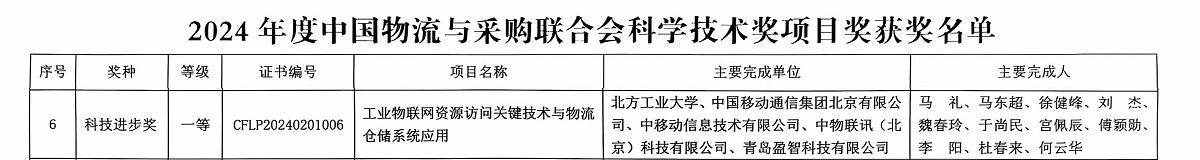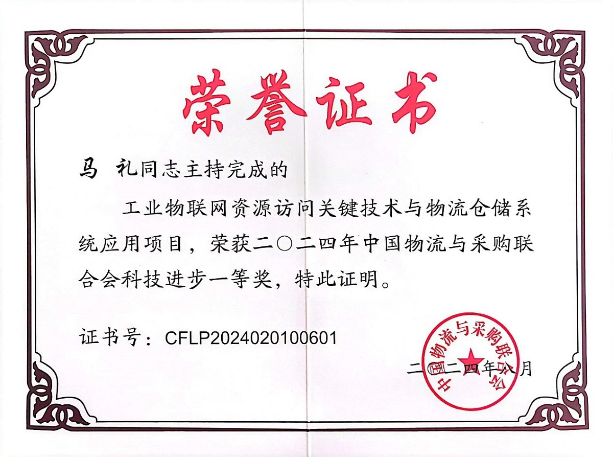 9月4日,2024年中国物流与采购联合会科学技术奖颁奖仪式在安徽合肥举行。永利官网作为第一完成单位,永利集团88304官网集团马礼教授作为第一完成人的项目成果“工业物联网资源访问关键技术与物流仓储系统应用”获评科技进步奖一等奖。这是永利官网首次以第一完成单位身份获得该奖项一等奖。