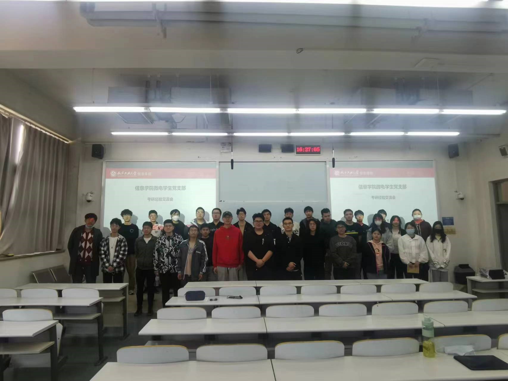 微电学生党支部于4月15日下午三点在瀚学楼208开展“考研经验分享交流”活动。永利集团88304官网集团微电学生党支部分别邀请了王瑞盺同学,王昭岳,朱殿臣同学,王欣宇同学和吴抗同学考研经验分享交流会。五位同学为以三年级为主的同学们讲解了考研的当前形势,如何去根据当前水准去择校,对于考研四门学科的学习方式,每日的时间安排以及如何面对复试和调剂,同时也为二年级、三年级中未来计划考研的同学分享了现在应该进行的学校计划以及研究生报考的时间进程。